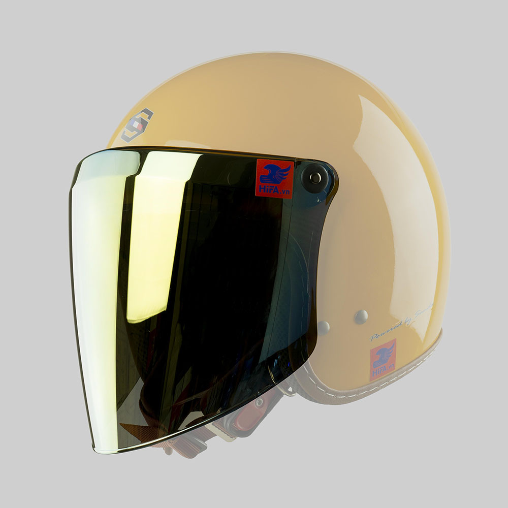 Kính MSD Flat Tráng Vàng được nhập khẩu từ Đài Loan. Dùng để gắn cho tất cả các loại mũ bảo hiểm 3/4 và fullface classic không kính có ba hột nút ở phía trước.