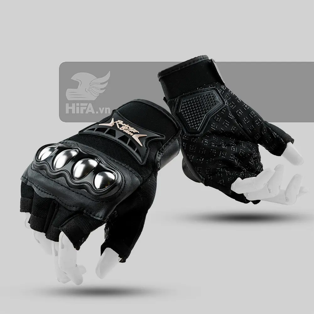 Găng tay Pro-Biker Inox Cụt được thiết kế dành cho người đi xe motor, xe gắn máy. Làm từ vải lưới Polyester thoáng mát. Phía trên có gù nhựa được làm từ Inox, đệm nhựa dưới bàn tay và các hạt nhựa giúp tạo ma sát và cầm nắm dễ dàng hơn. Ngoài ra trên các ngón tay còn có các lỗ thông gió làm từ nhựa và lưới kim loại.