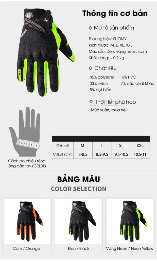 Với thiết kế thân thiện và mang lại cảm giác thoải mái khi sử dụng. SUOMY đang là đôi găng tay được săn đón nhất trong phân khúc găng tay bảo hộ xe máy giá rẻ.