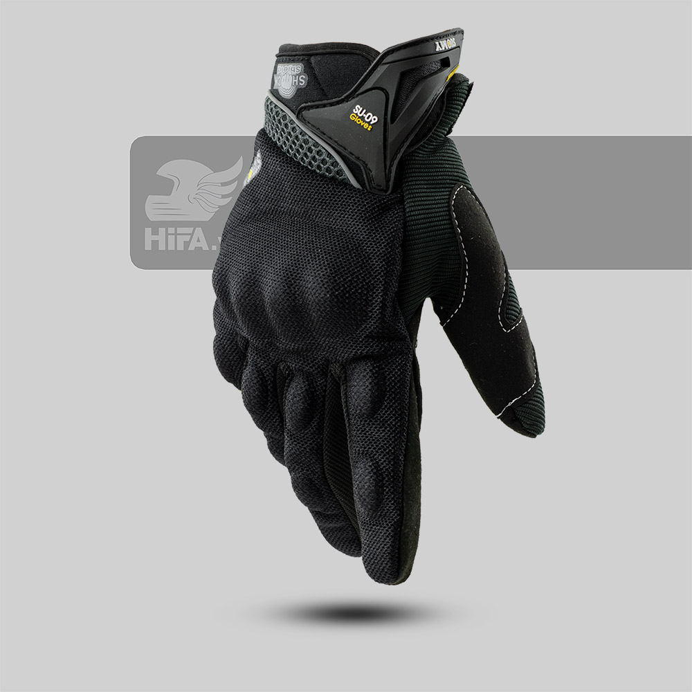 Găng tay SUOMY SU-09 dài ngón Đen đầu ngón tay sử dụng được điện thoại cảm ứng. Phía trên mu bàn tay có gù làm từ PU được bọc gọn gàng.