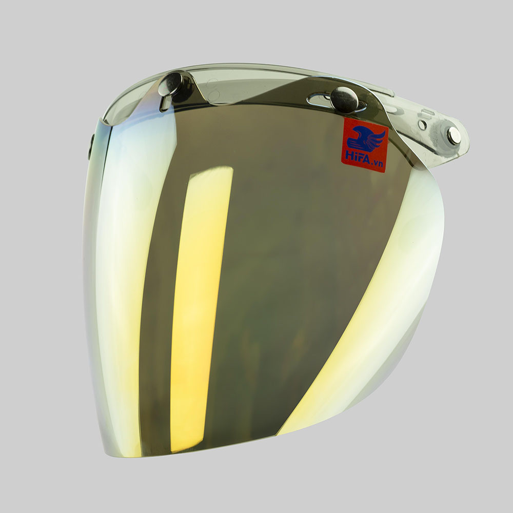 Kính MSD Eagle Tráng Vàng được nhập khẩu từ Đài Loan. Dùng để gắn cho tất cả các loại mũ bảo hiểm 3/4 và fullface classic không kính có ba hột nút ở phía trước.