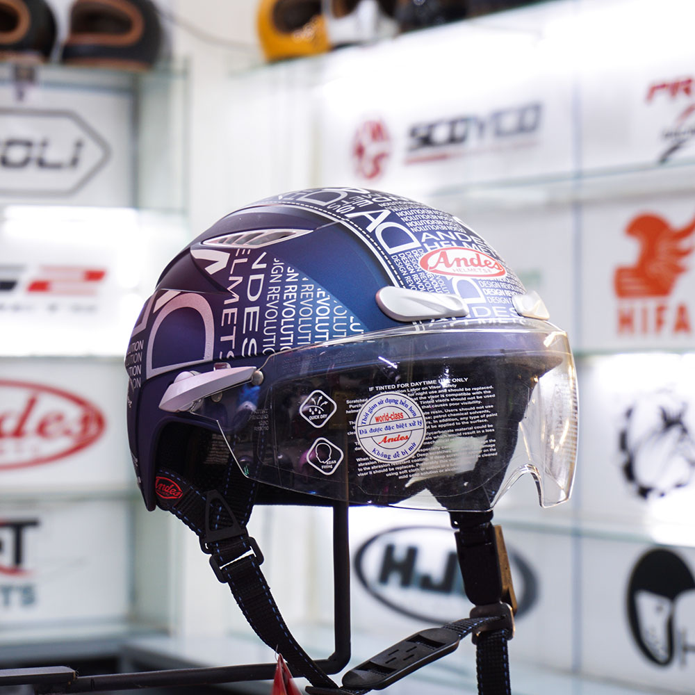 Mũ 1/2 đầu Andes 3s-126 Kính là thiết kế mới nhất của Andes với lót trong tháo rời 100%.