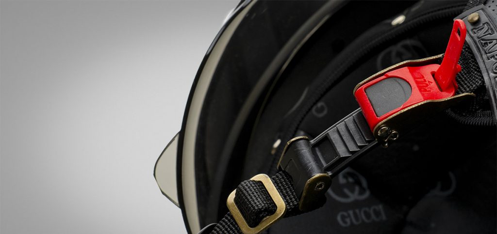 - Khóa lẫy sử dụng kim loại không rỉ sét cùng bộ phận bờ cằm từ nhựa TPU mềm dẻo, có thêm các nấc để điều chỉnh kích cỡ theo vòng đầu.