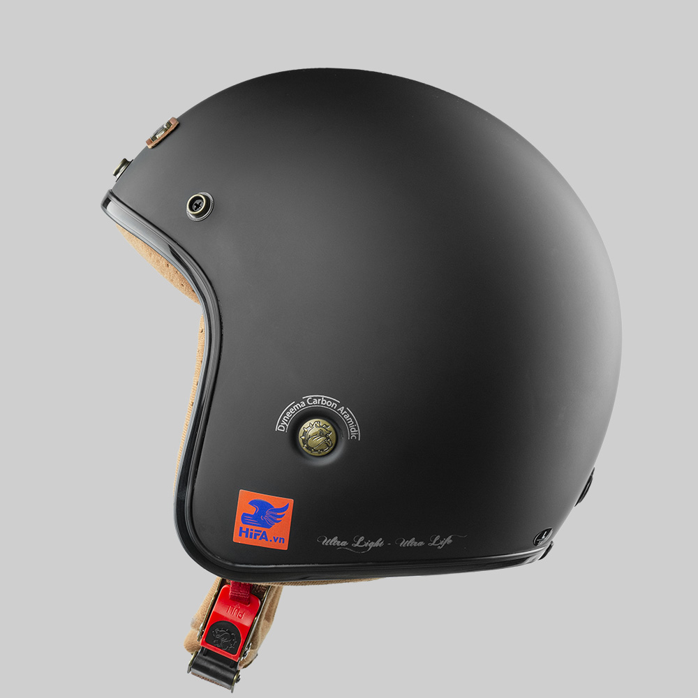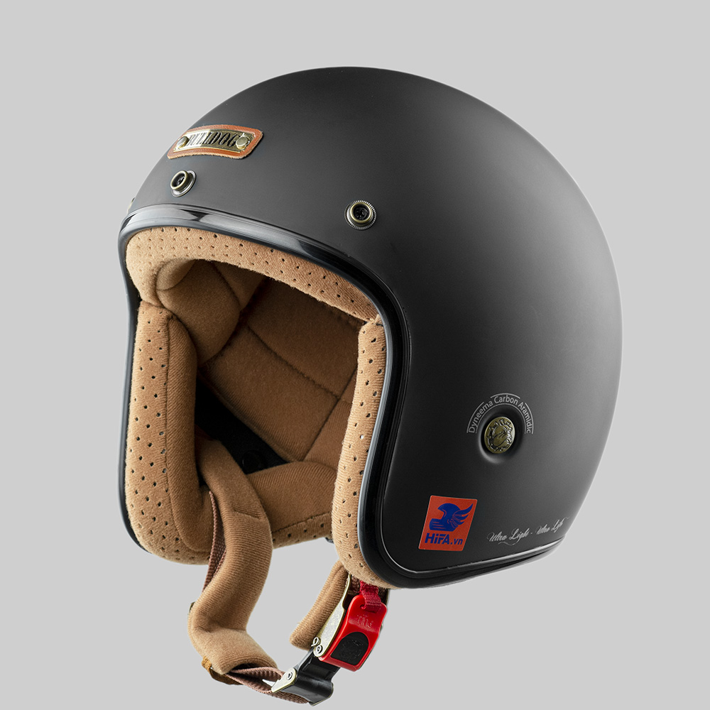 MŨ BẢO HIỂM 3/4 BULLDOG HELI FIBERGLASS ĐEN NHÁM
