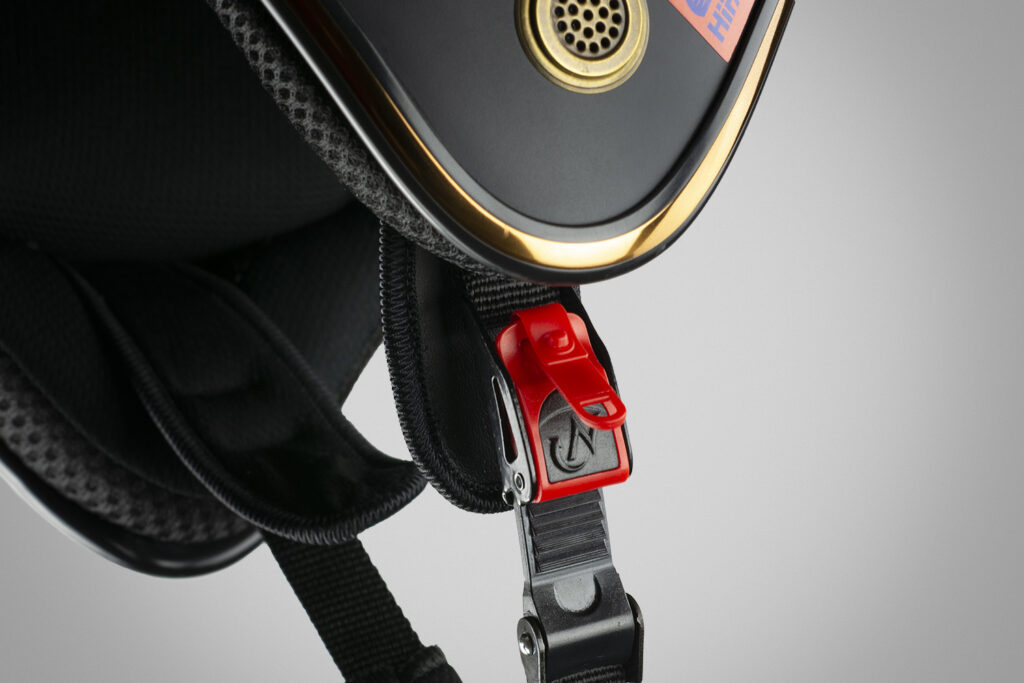 Nón sử dụng khóa lẫy: là loại khóa thông dụng nhất trên nón ¾ hiện nay, khóa có các nấc lẫy có độ an toàn hơn nhiều so với loại khóa bấm được sử dụng trên các loại nón nửa đầu nhưng vẫn cực dễ sử dụng, bạn có thể thao tác cài và gỡ khóa chỉ bằng 1 tay.