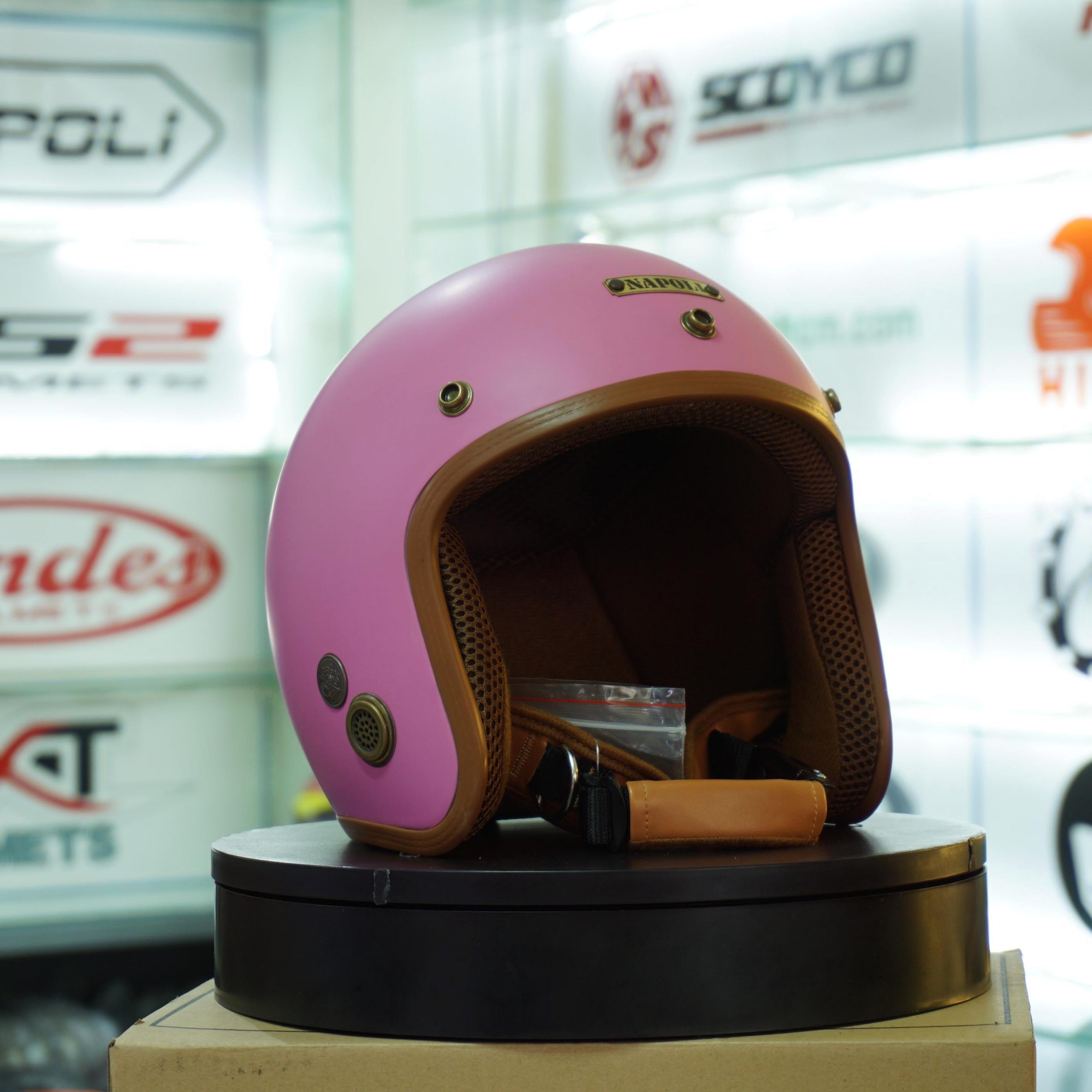 MŨ 3/4 NAPOLI SH – HỒNG PHẤN VIỀN NÂU