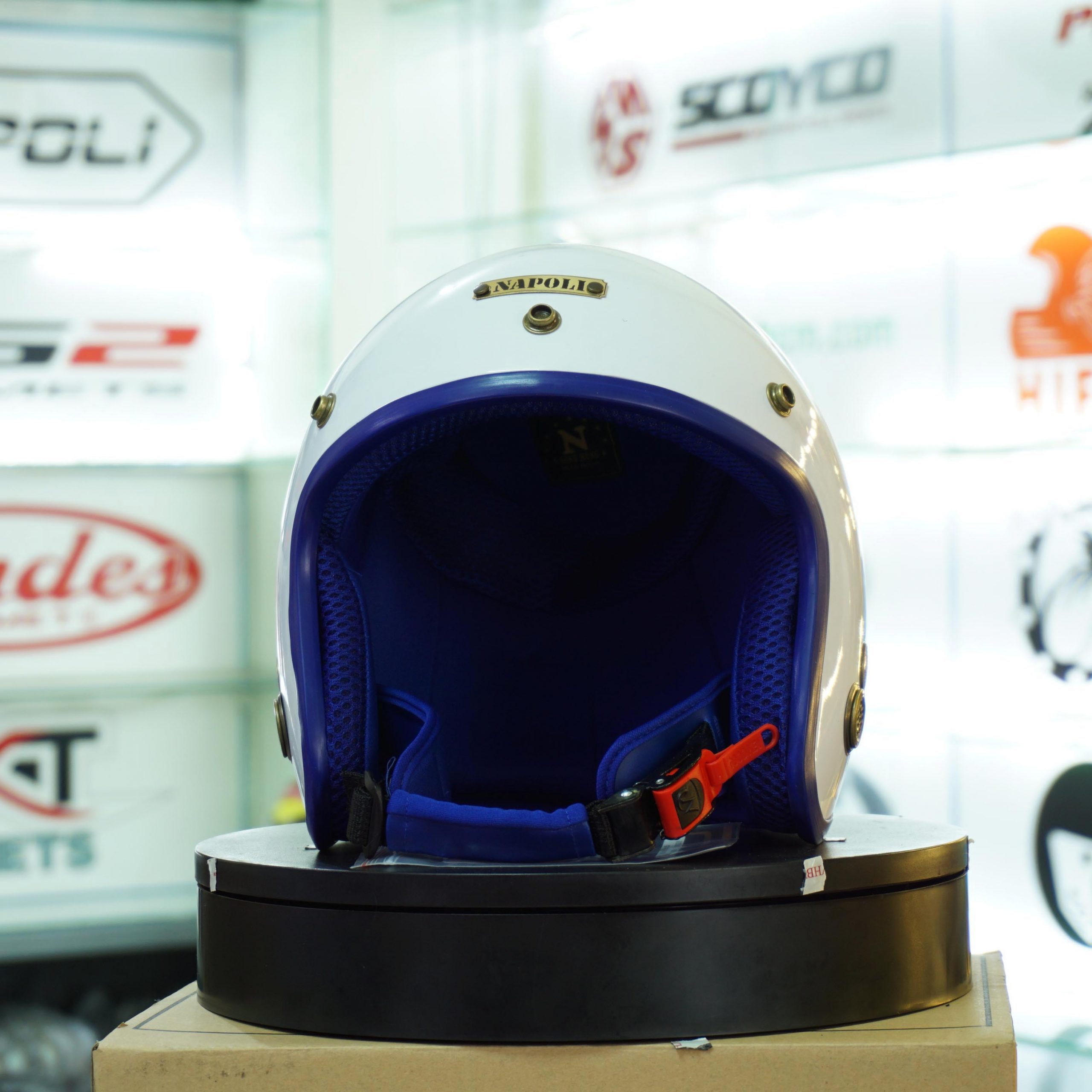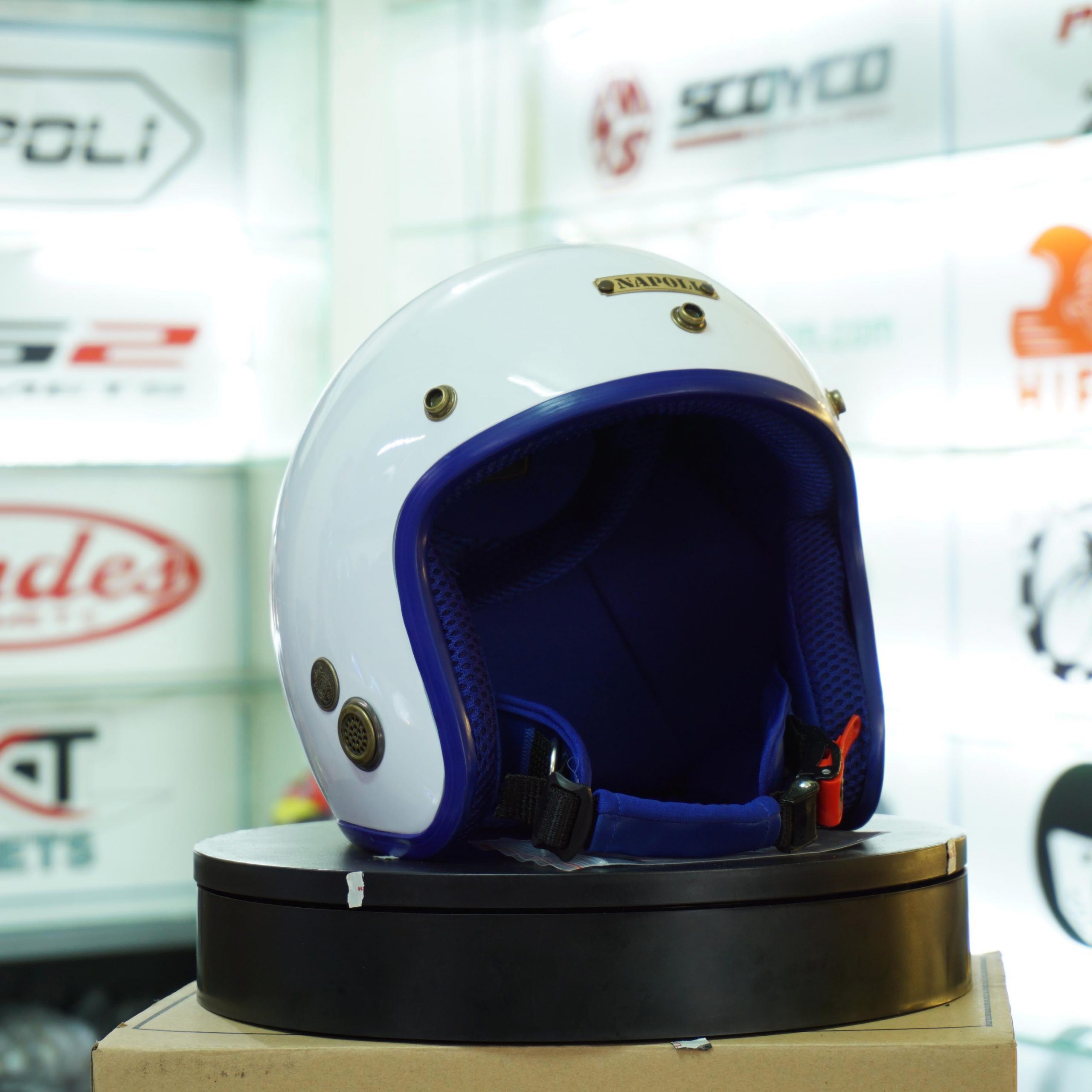 MŨ 3/4 NAPOLI SH – TRẮNG VIỀN XANH DƯƠNG