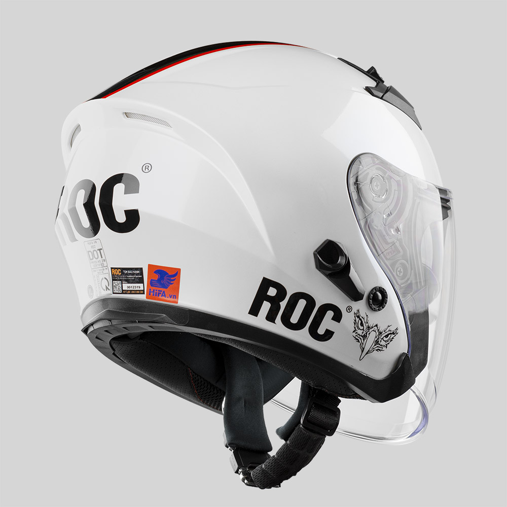 Mũ bảo hiểm 3/4 hai kính ROC 02 được làm từ chất liệu ABS nguyên sinh, được chứng nhận tiêu chuẩn an toàn DOT (USA). Trên thân nón còn trang bị thêm lỗ khóa để người dùng an tâm hơn khi mũ được bảo vệ an toàn.