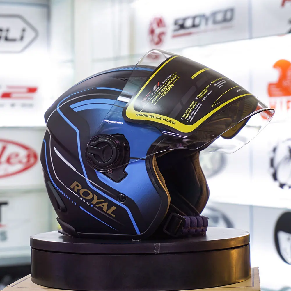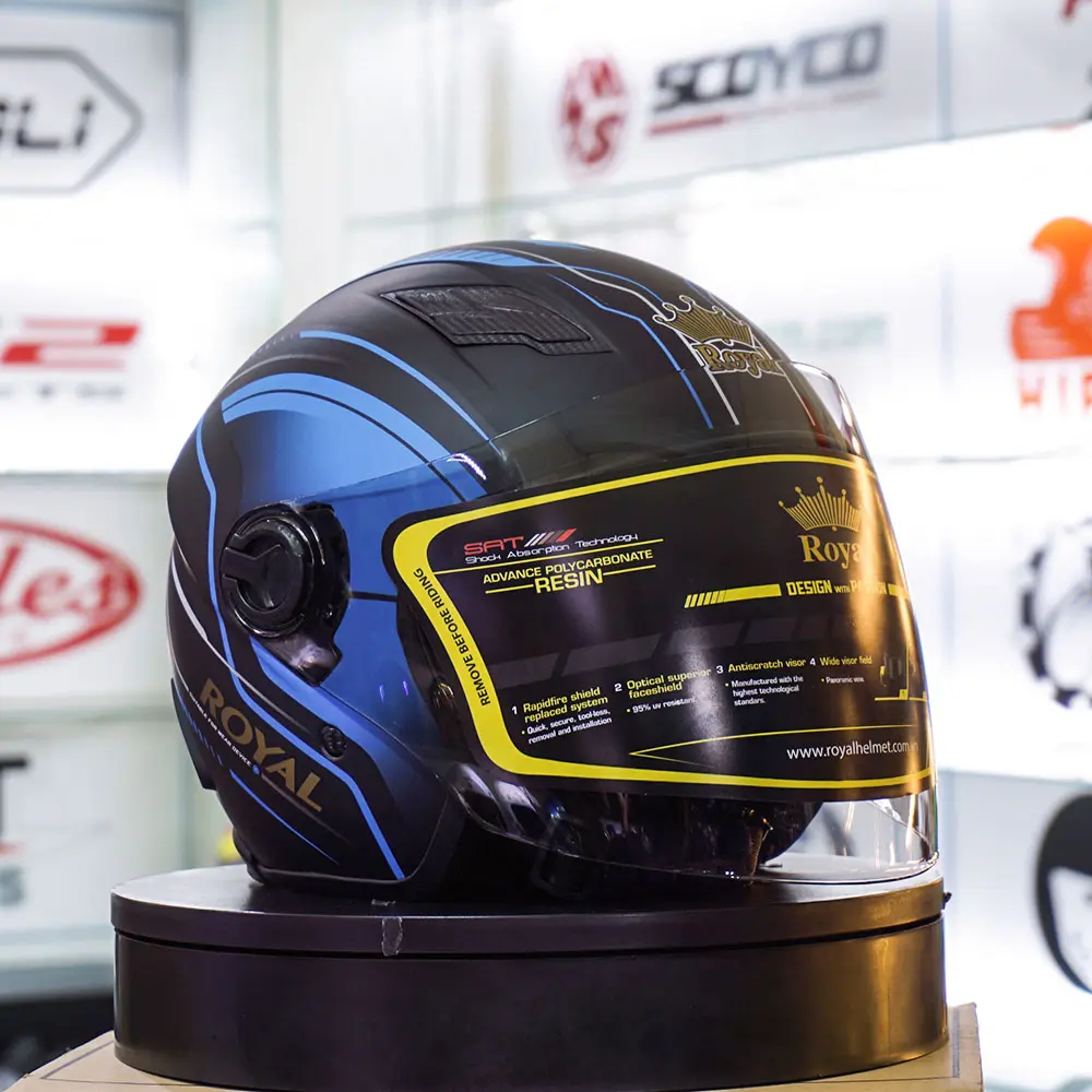 – Đối với các tín đồ của dòng nón bảo hiểm 3/4 M134 – Xanh cổ điển của Royal chắc hẳn sẽ cực kì hài lòng với dòng nón M134 được bổ sung thêm lớp kính chắn gió.