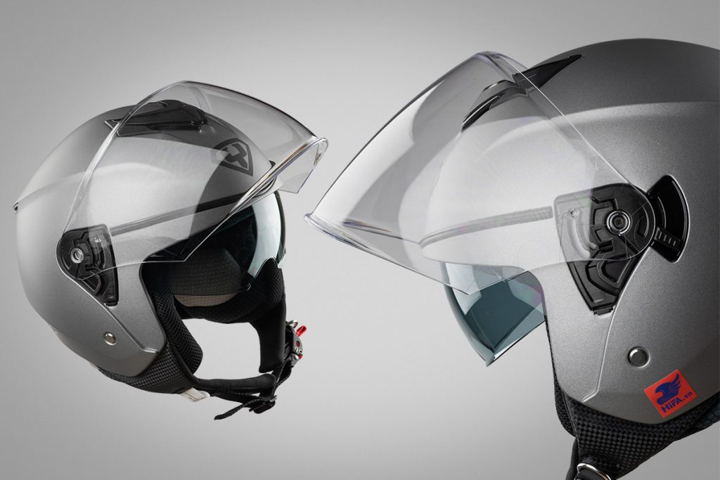 Kính chắn mũ 3/4 Yohe 852 được làm từ polycarbonate, đạt chuẩn E1, độ bền cao, có tác dụng chắn gió, bụi, đá băng, côn trùng bay vào mắt. Kính ngoài có tầm nhìn trong và rộng và có thêm một kính âm thiết kế bên trong có tác dụng chống chói khi đi trời nắng. Kính chắn dễ dàng tháo lắp chỉ với một thao tác.