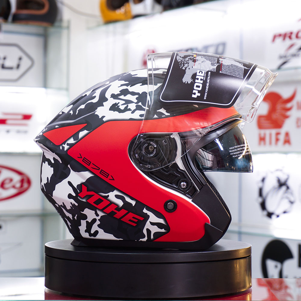 MŨ 3/4 YOHE 878 CAMO ĐỎ