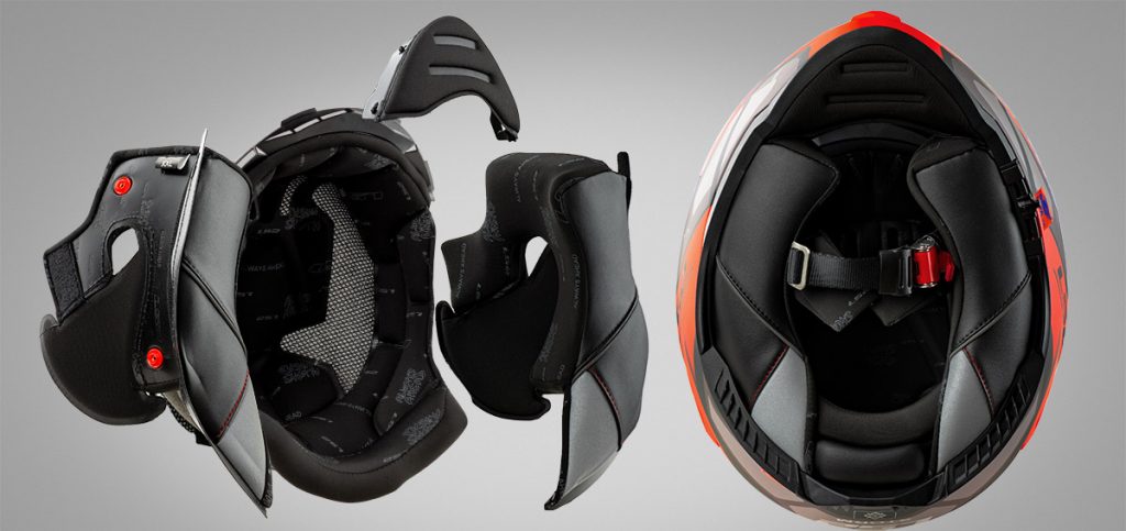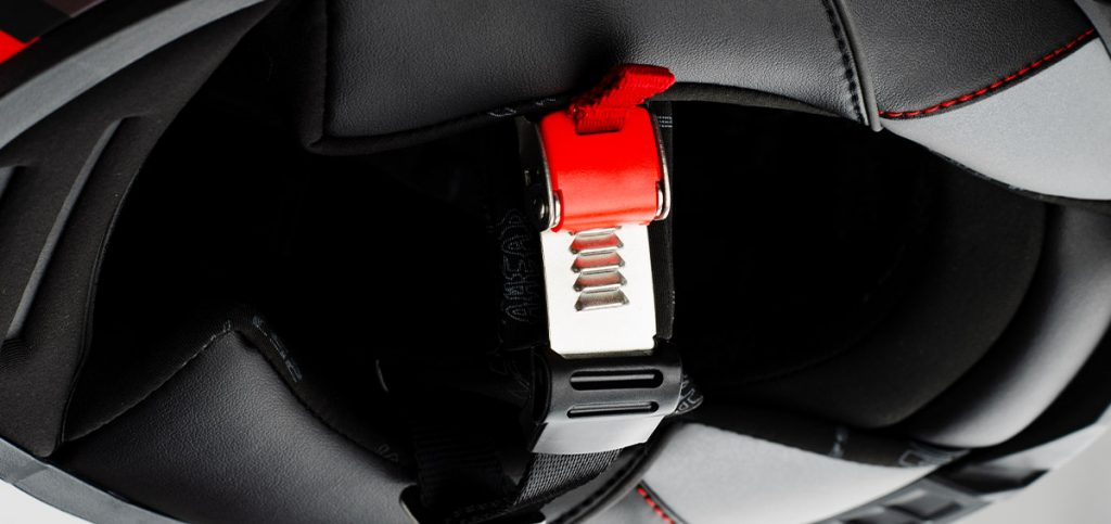 - LS2 FF800 sử dụng khóa lẫy kim loại chắn chắn, với các nấc để để điều chỉnh kích cỡ quai đeo.