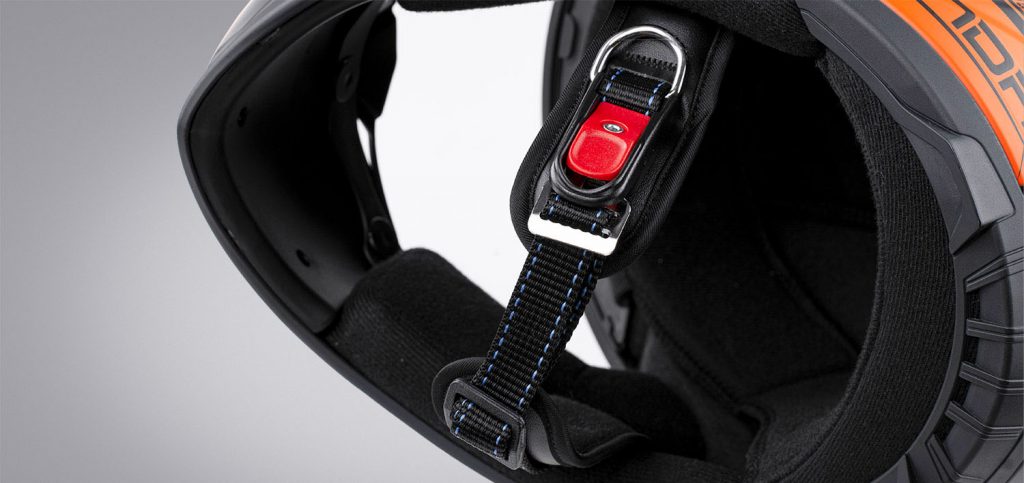 - Mũ được thiết kế thêm khóa kính ở chính giữa, ngay phía trên thông gió cằm, giúp cố định kính khi chạy tốc độ cao và giảm nguy cơ tổn thương vùng mặt người sử dụng khi xảy ra tai nạn.
