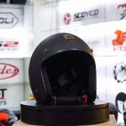 - Gọn: Bạn sẽ không lo cốp xe không đủ chỗ để cất nón bảo hiểm ¾ đầu vì Royal M139 không cồng kềnh, kính bảo hộ ẩn trong thân nón sẽ giảm thể tích nón đáng kể.