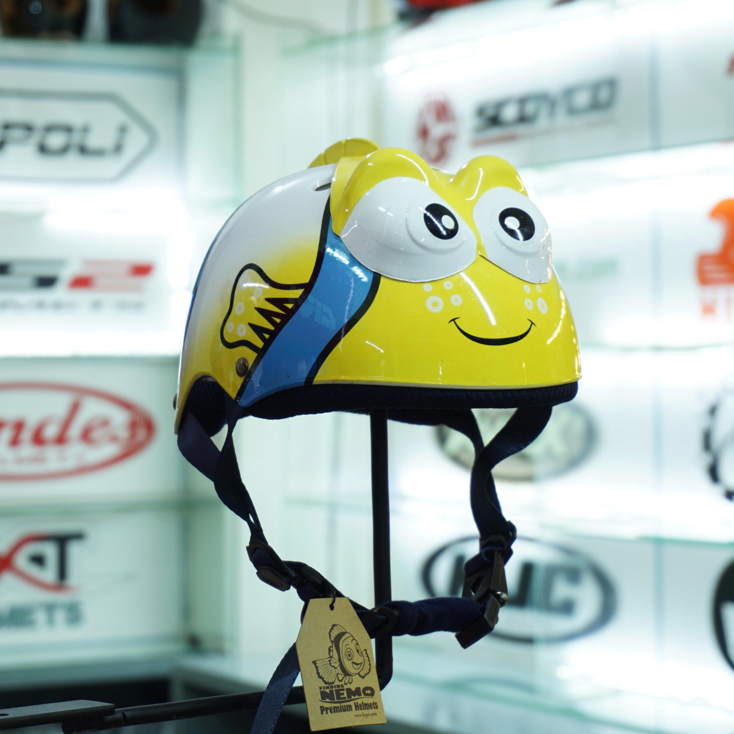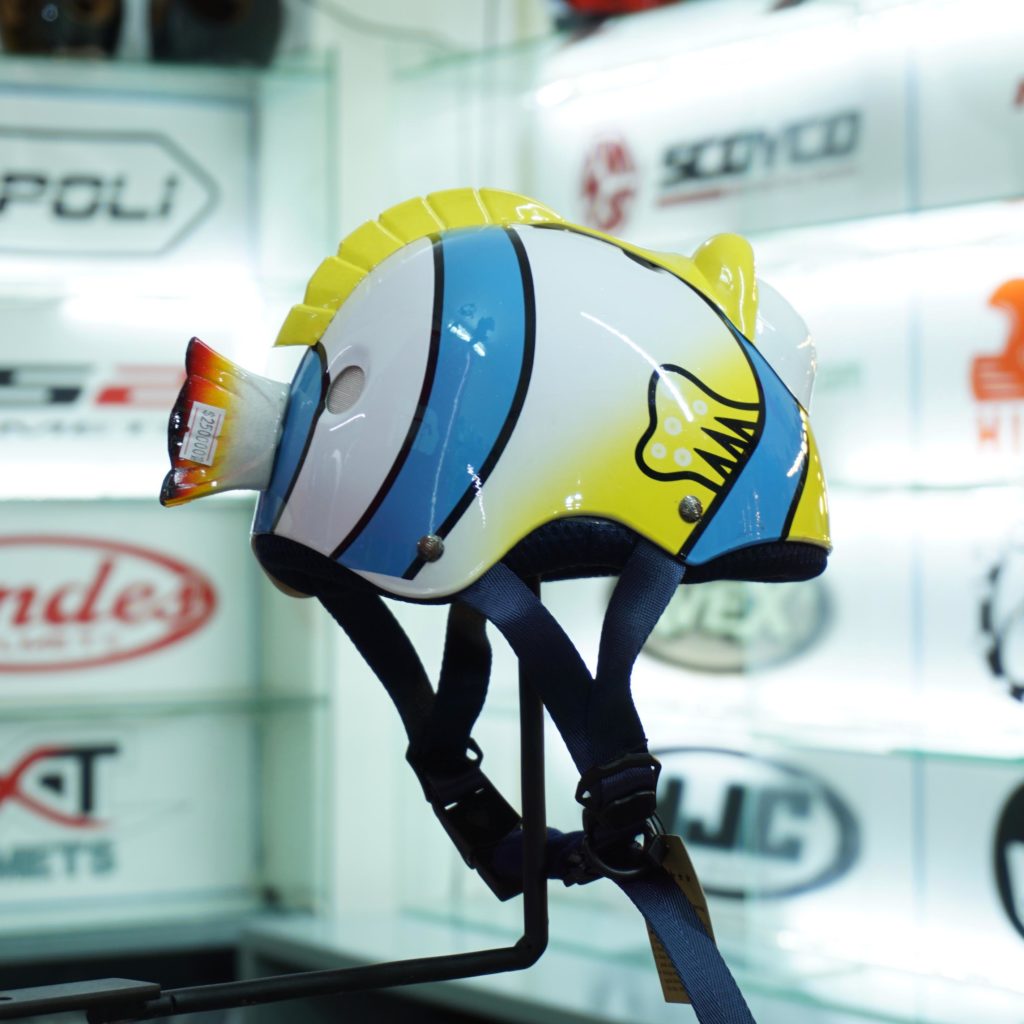 Không chỉ khi đi xe máy ba mẹ mới cần đội mũ bảo hiểm cho bé, ngay cả khi bé đi xe mẹ cũng nên trang bị một chiếc mũ bảo hiểm để đảm bảo an toàn trong mỗi chuyến “hành trình” của con. Mũ bảo hiểm hình cá sẽ là một lựa chọn đúng đắn dành cho bé yêu nhà mình. Sản phẩm được làm bằng nhựa cao cấp, rất bền, phía trong là xốp nên bé không bị cảm giác nặng đầu khi đội. Đây thực sự là món đồ không thể thiếu để đảm bảo an toàn mỗi khi bé đi cùng.