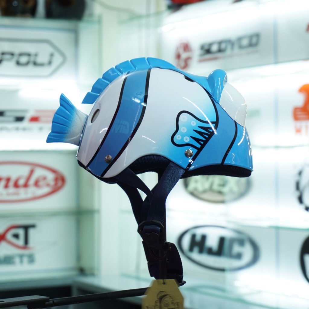 Không chỉ khi đi xe máy ba mẹ mới cần đội mũ bảo hiểm cho bé, ngay cả khi bé đi xe mẹ cũng nên trang bị một chiếc mũ bảo hiểm để đảm bảo an toàn trong mỗi chuyến “hành trình” của con. Mũ bảo hiểm hình cá sẽ là một lựa chọn đúng đắn dành cho bé yêu nhà mình. Sản phẩm được làm bằng nhựa cao cấp, rất bền, phía trong là xốp nên bé không bị cảm giác nặng đầu khi đội. Đây thực sự là món đồ không thể thiếu để đảm bảo an toàn mỗi khi bé đi cùng.