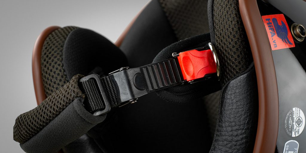 Nón sử dụng khóa lẫy với độ chịu lực tới 60kg nhưng vẫn cực dễ sử dụng (có thể tháo tác đóng/ mở dễ dàng chỉ bằng 1 tay). Trên thân khóa có các nấc để điều chỉnh kích cỡ.